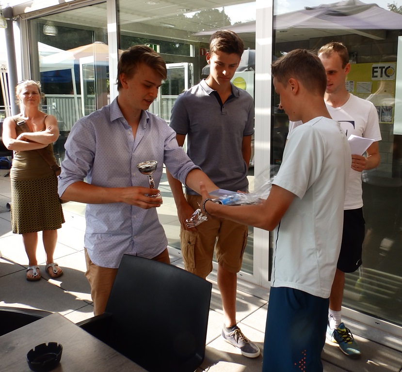 Sfeerimpressie aangaande de prijsuitreiking van de winnaars aangaande het ETC singeltornooi voor de jeugd, editie 2015.